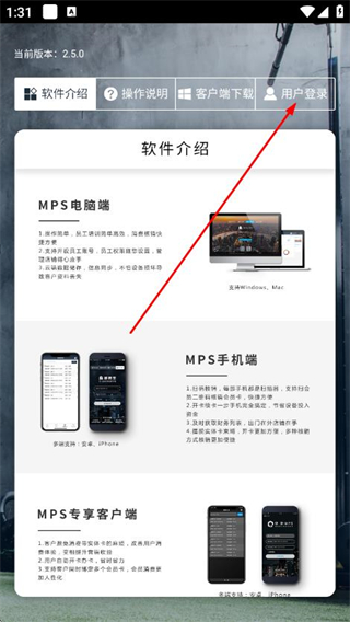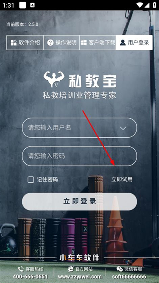 1、在私教宝app的软件介绍页面,点击用户登录选项,进入登录页面。