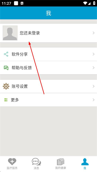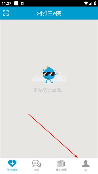 1、在湘雅三e院app的医疗服务页面,点击底部我选项,进入个人页面。