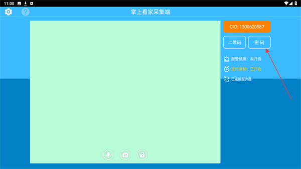 1、启动掌上看家的应用,在右侧点击密码的按钮。