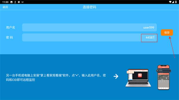 3.在用做监控端的iOS或安卓设备上下载并安装“掌上看家”应用,打开应用,输入您的CID号码、用户名和密码后保存并登录,试试您能看到啥?