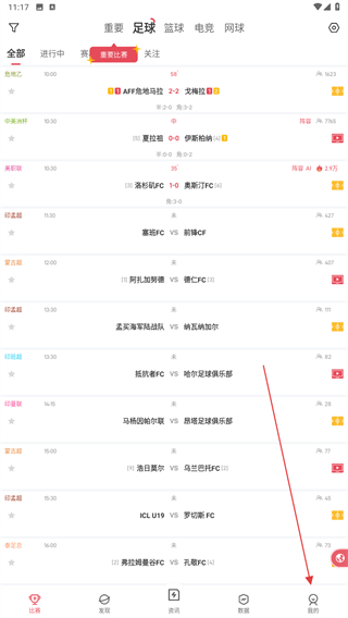 1、启动雷速体育的APP,进入时点击右下角我的图标。