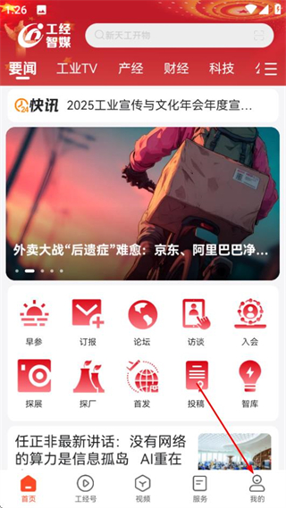 1、在工经智媒的首页,点击底部的我的选项,进入个人中心页面。