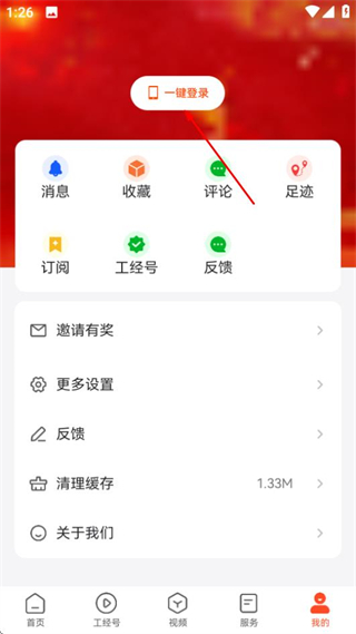 2、在个人中心页面,点击一键登录选项,进入手机号登录页面。
