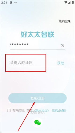 3、在验证码输入框中填写收到的验证码,点击登录完成账号的登录操作
