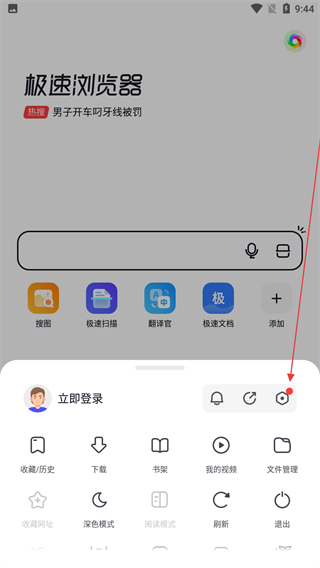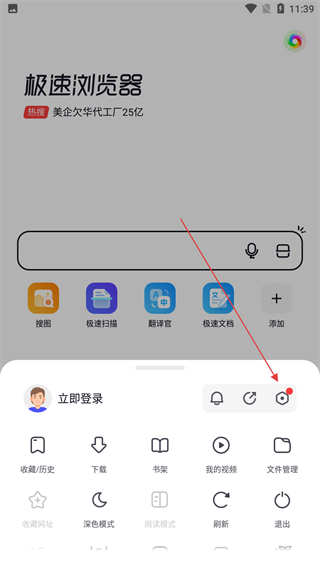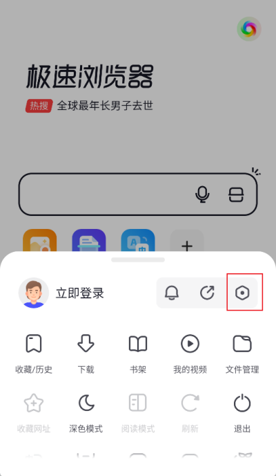 2、弹出功能菜单后点击设置图标,进入设置页面。