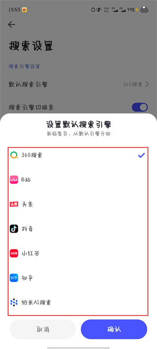 5、选择想要设置的搜索引擎,最后点击确认即可。