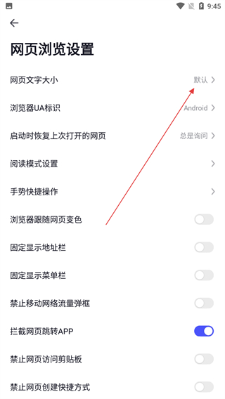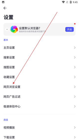 3、找到网页浏览设置选项,点击进入网页浏览设置。