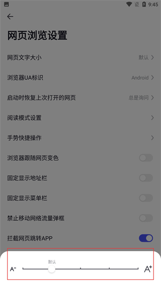 5、通过滑动条调整文字大小,调整后即可更改文字大小。