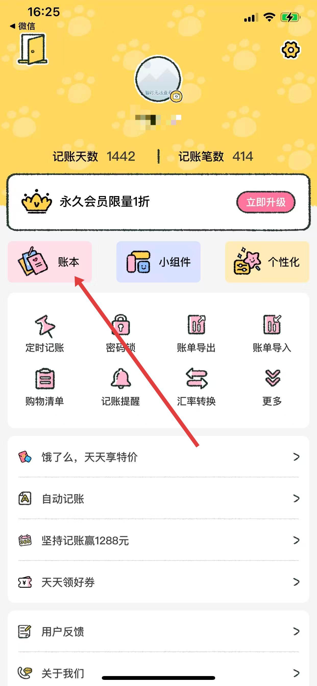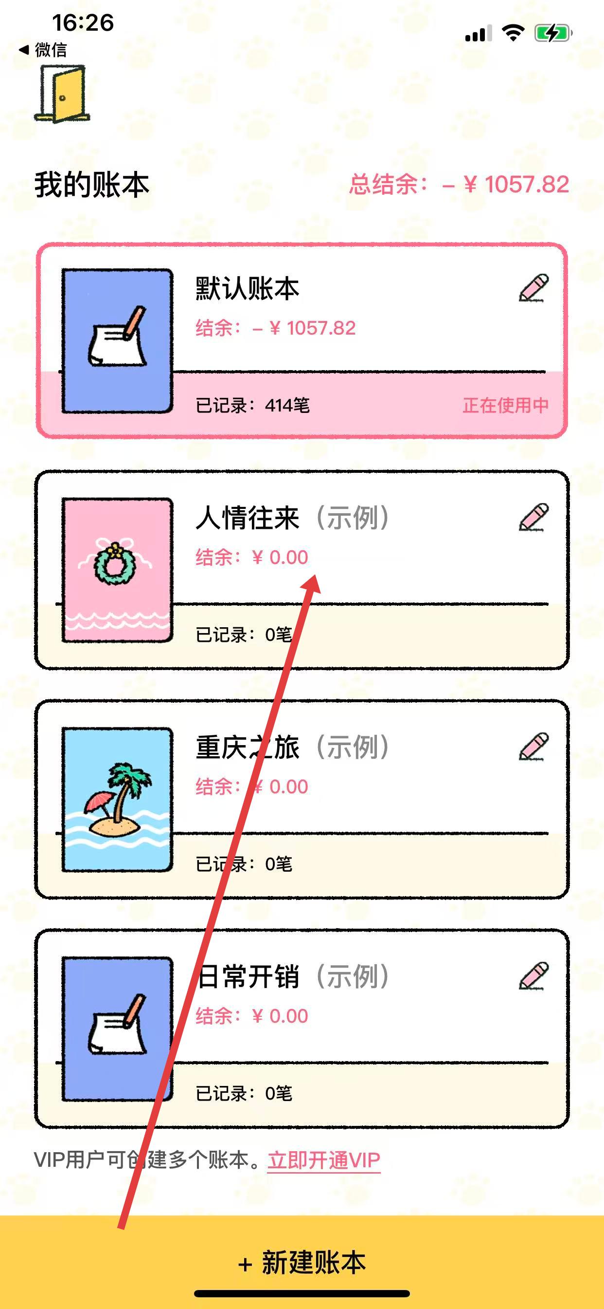 3、在我的账本页面,选择想要删除的账本,点击进入该账本的详情页面。