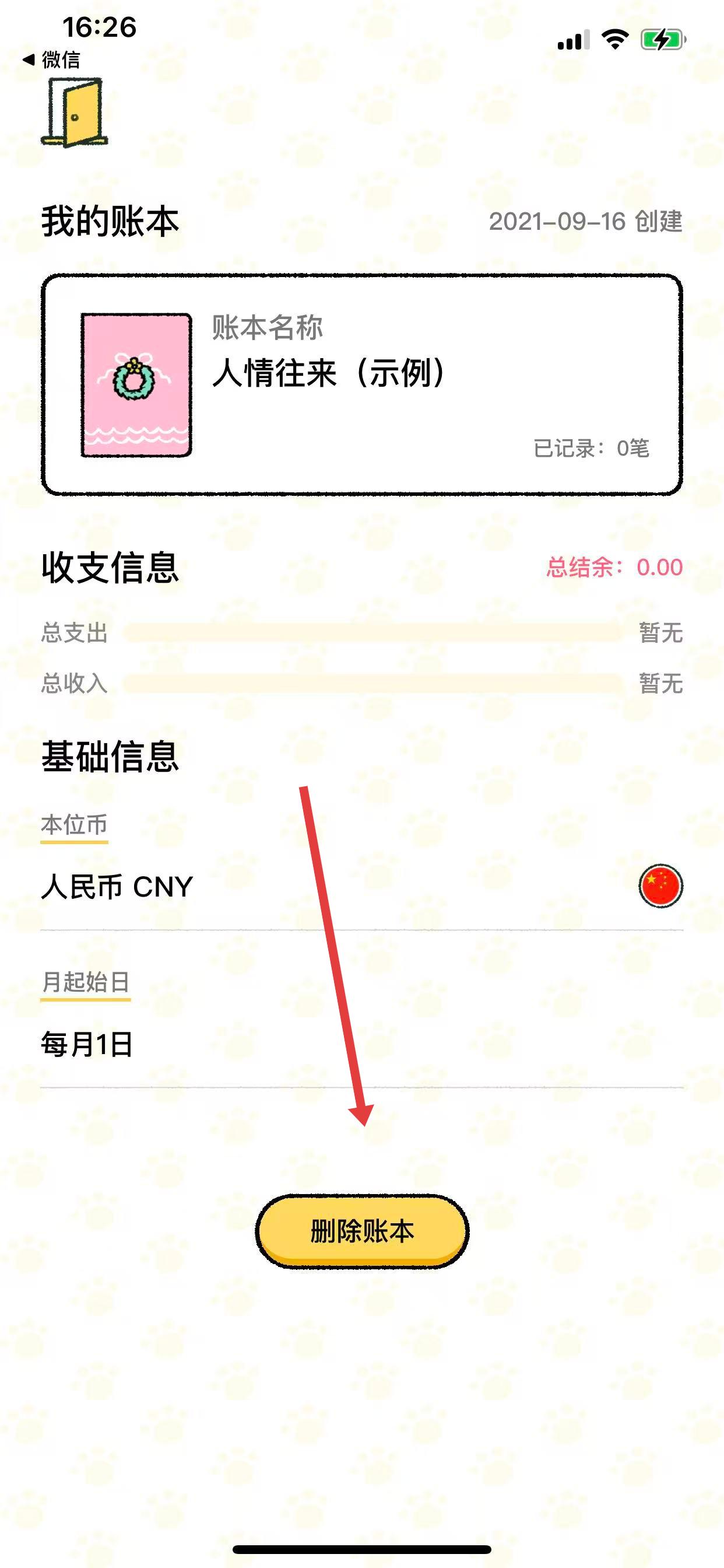 4、在账本详情页面,滑动到下方,点击删除账本按钮,按照提示确认删除操作即可。