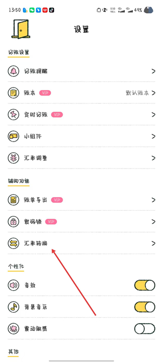 3、在设置页面,找到记账提醒选项,点击进入记账提醒设置页面。