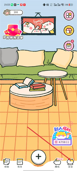 兼顾可爱轻松游戏风格与实用的账目统计功能(周、月、年视图自由切换)