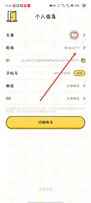 3、在个人信息页面找到昵称选项并点击,进入昵称的编辑。