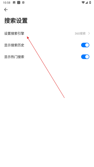 3、在搜索设置界面中点击设置搜索引擎选项,弹出搜索引擎的选择列表等待操作。