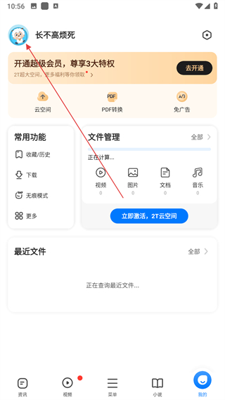 1、打开360浏览器进入主界面,进入个人中心页面后点击头像区域。