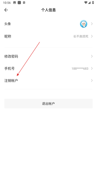 2、在个人信息界面中找到注销帐户选项,点击该选项进入注销帐户。