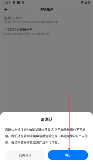 3、在注销帐户页面选择注销360浏览器帐户,弹出确认的提示弹窗。