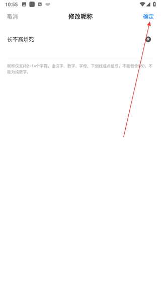 4、在修改昵称页面的输入框中填写新昵称,点击确定完成。