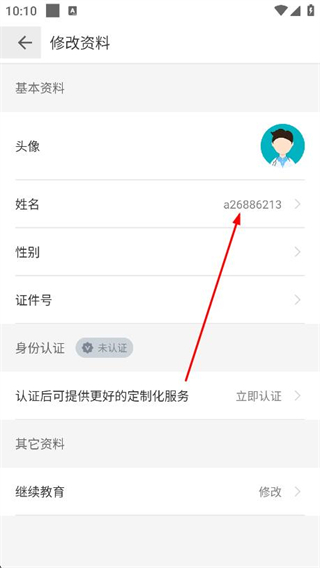 3、在修改资料页面点击姓名栏,进入姓名修改界面。
