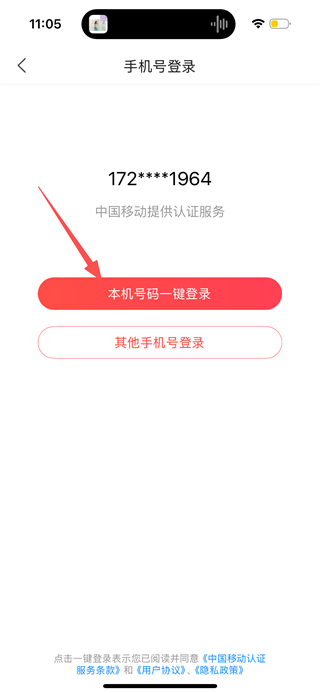 3、在手机号登录页面,点击本机号码一键登录按钮,完成账号登录。