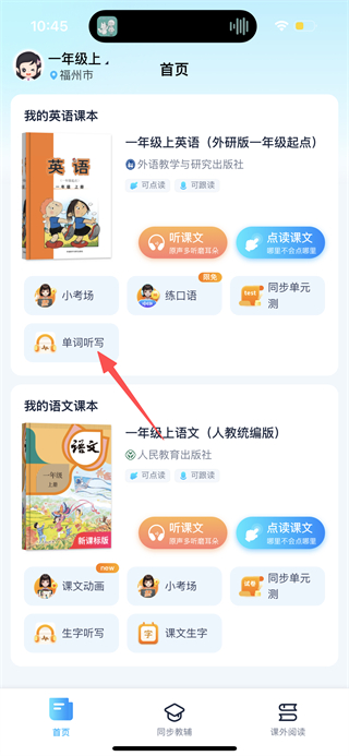 1、在川学宝的首页,点击单词听写选项,进入听写助手页面。