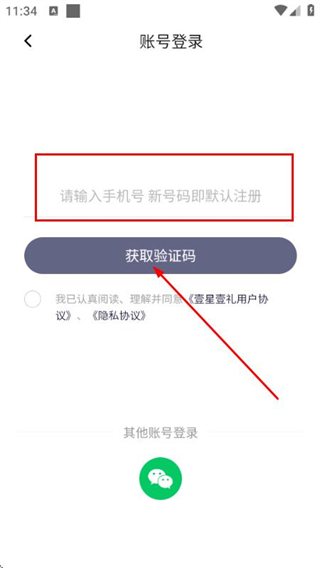 3、在手机验证登录页面填写手机号,勾选协议后,点击获取验证码。