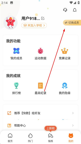 2、在我的页面,点击切换成员。
