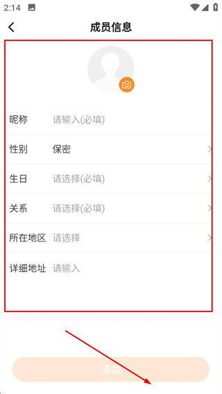 4、填写昵称、性别、生日信息后,点击添加。