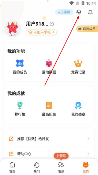 2、在个人中心页面点击右上角的人工客服,进入客服对话页面。