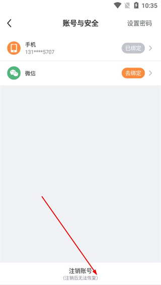 4、在账号与安全页面点击注销账号选项,进入注销账号页面。