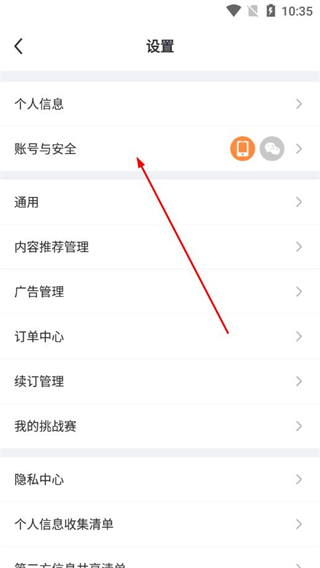 3、在设置页面选择账号与安全选项,进入账号与安全页面。