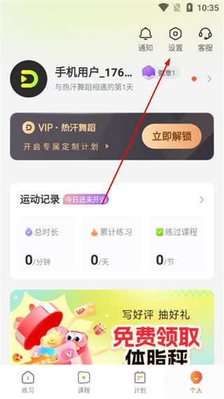 1、打开热汗舞蹈APP,点击底部个人进入个人中心页面。