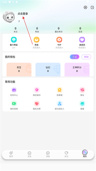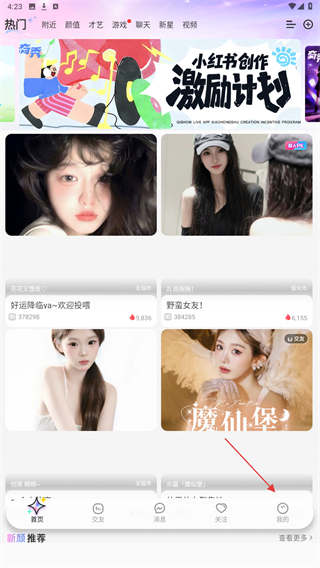 1、启动奇秀直播的APP,进入时点击右下方我的按钮。