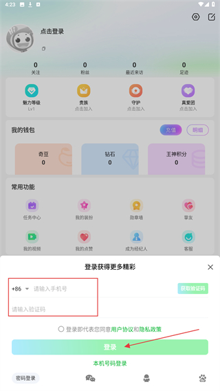 3、输入手机号、验证码后,再点击登录的按钮即可完成。