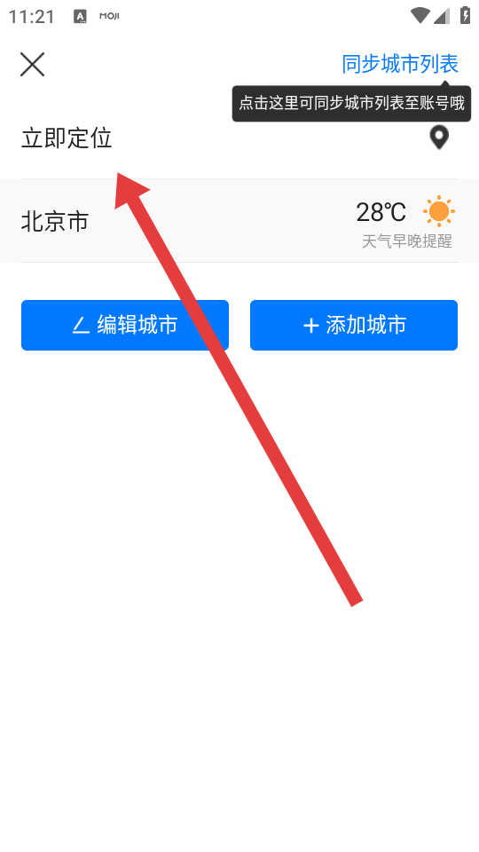 2、在城市管理页面中,点击立即定位选项,触发定位权限请求弹窗,以便开启位置权限。