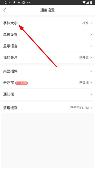 3、在通用设置页面,点击字体大小选项,进入字体大小调整页面后。