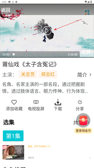 3、在莆仙戏的界面内,选择并点击要播放的戏曲。