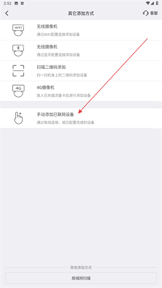 2、进入添加方式的页面内,选择并点击手动添加的按钮。