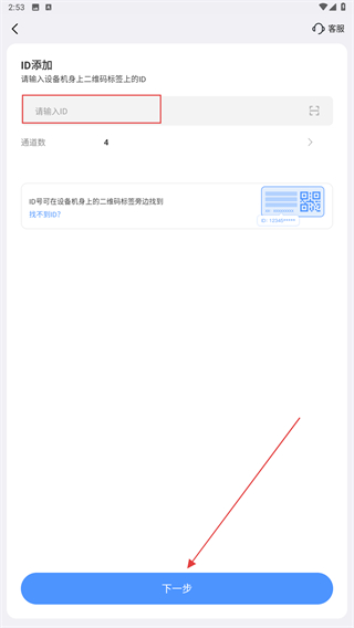 3、进入该页面内,输入ID后点击下一步即可完成添加。