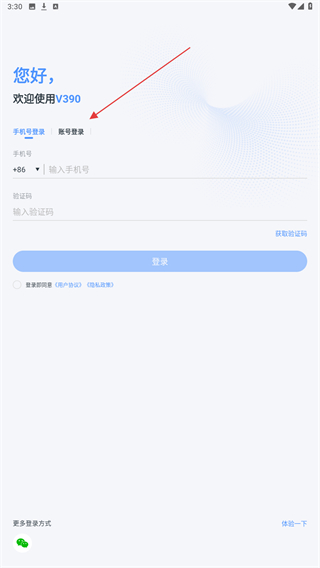 1、启动安格华v390摄像头APP,进入时点击账号登录。