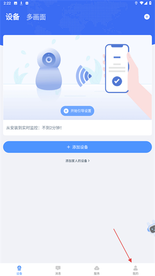 1、打开eseecloud APP,进入设备多画面界面,点击+添加设备按钮。