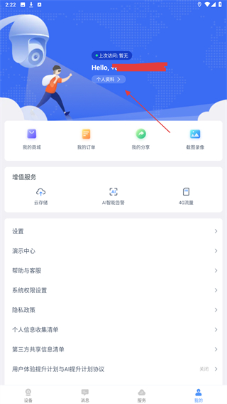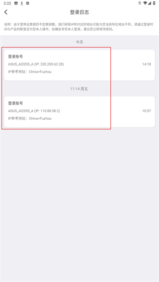 3、进入个人资料的页面内,点击登录日志的按钮。