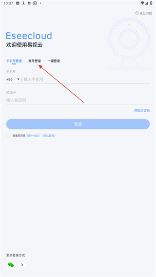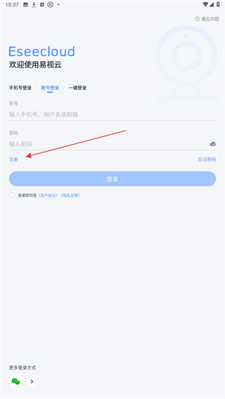 1、打开易视云APP,进入时点击账号登录的按钮。