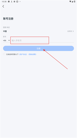 4、选择后在注册的页面内,输入手机号点击注册即可。