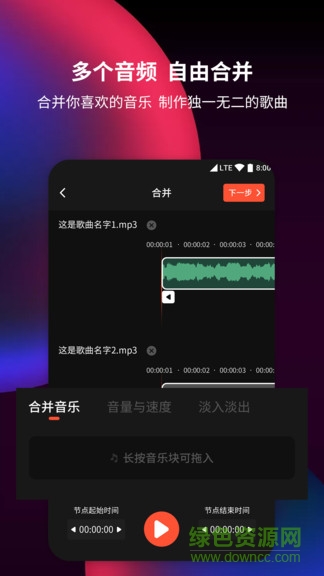 高效的混音合成:随意剪辑两首曲子,混合一起播放,可以感受不一样的音乐效果。