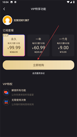 2、在个人功能页面中,找到VIP特惠选项并点击,进入会员购买界面。