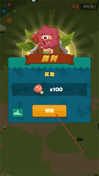 4、点击领取按钮,获取关卡奖励如火腿,推进游戏进度。