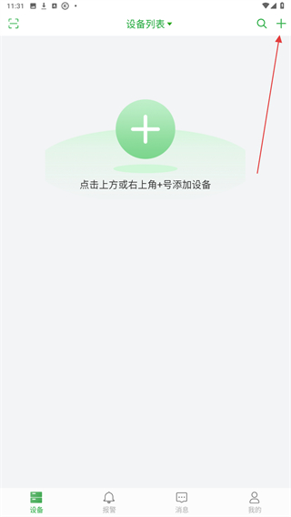 1、打开手机远程监控APP,在首页右上角点击+的功能图标。