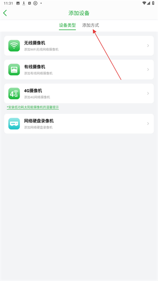 3、在设备类型的页面内,选择并点击添加方式的按钮进行切换。