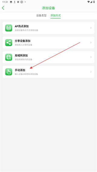 4、在添加方式的界面内,用户需点击手动添加的功能按钮。